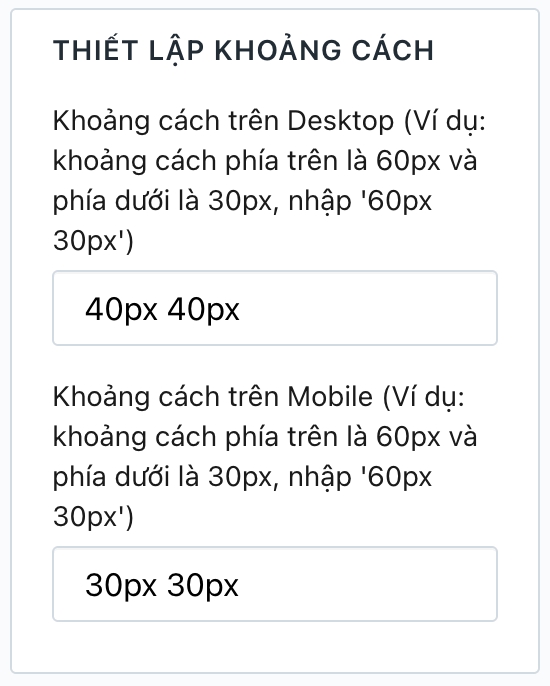 Thiết lập này cho phép bạn thay đổi khoảng cách giữa module đang thiết lập với module ở trên và dưới nó