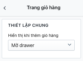 Truy cập Admin > Tùy chỉnh giao diện > Trang giỏ hàng > Thiết lập chung