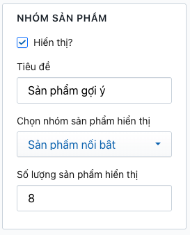 Truy cập Admin > Tùy chỉnh giao diện > Trang giỏ hàng > Nhóm sản phẩm