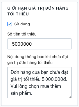 5. Giới hạn giá trị đơn hàng tối thiểu
