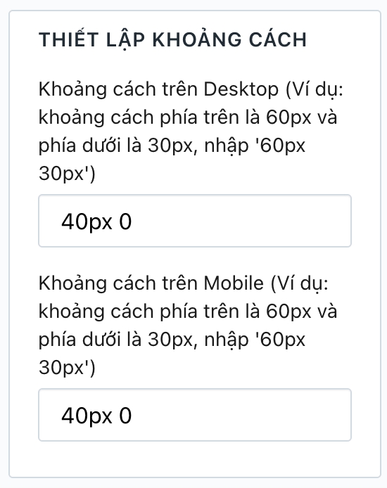 Thiết lập này cho phép bạn thay đổi khoảng cách giữa module đang thiết lập với module ở trên và dưới nó
