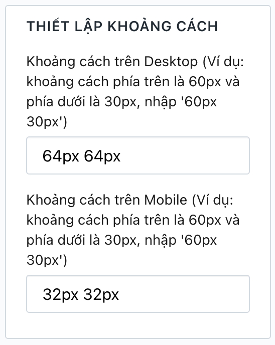 Thiết lập này cho phép bạn thay đổi khoảng cách giữa module đang thiết lập với module ở trên và dưới nó