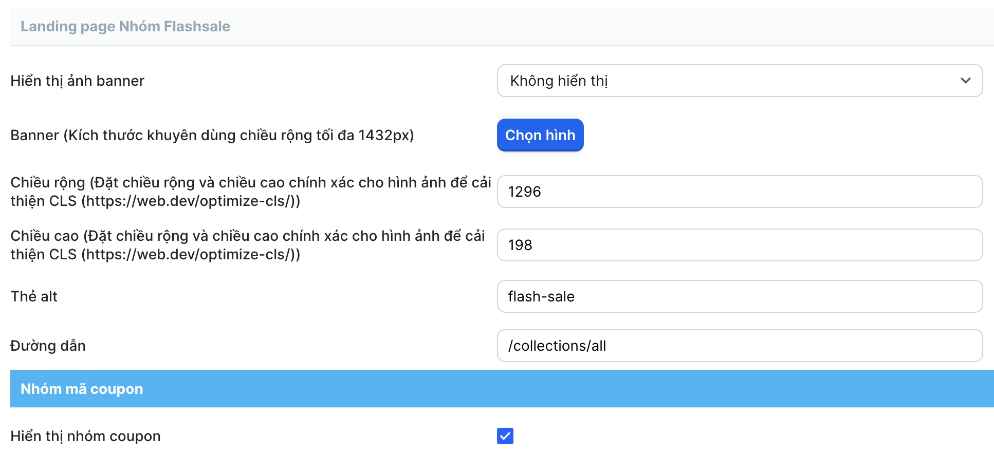 2. Thiết lập giao diện trang Flash Sale 1 khung giờ