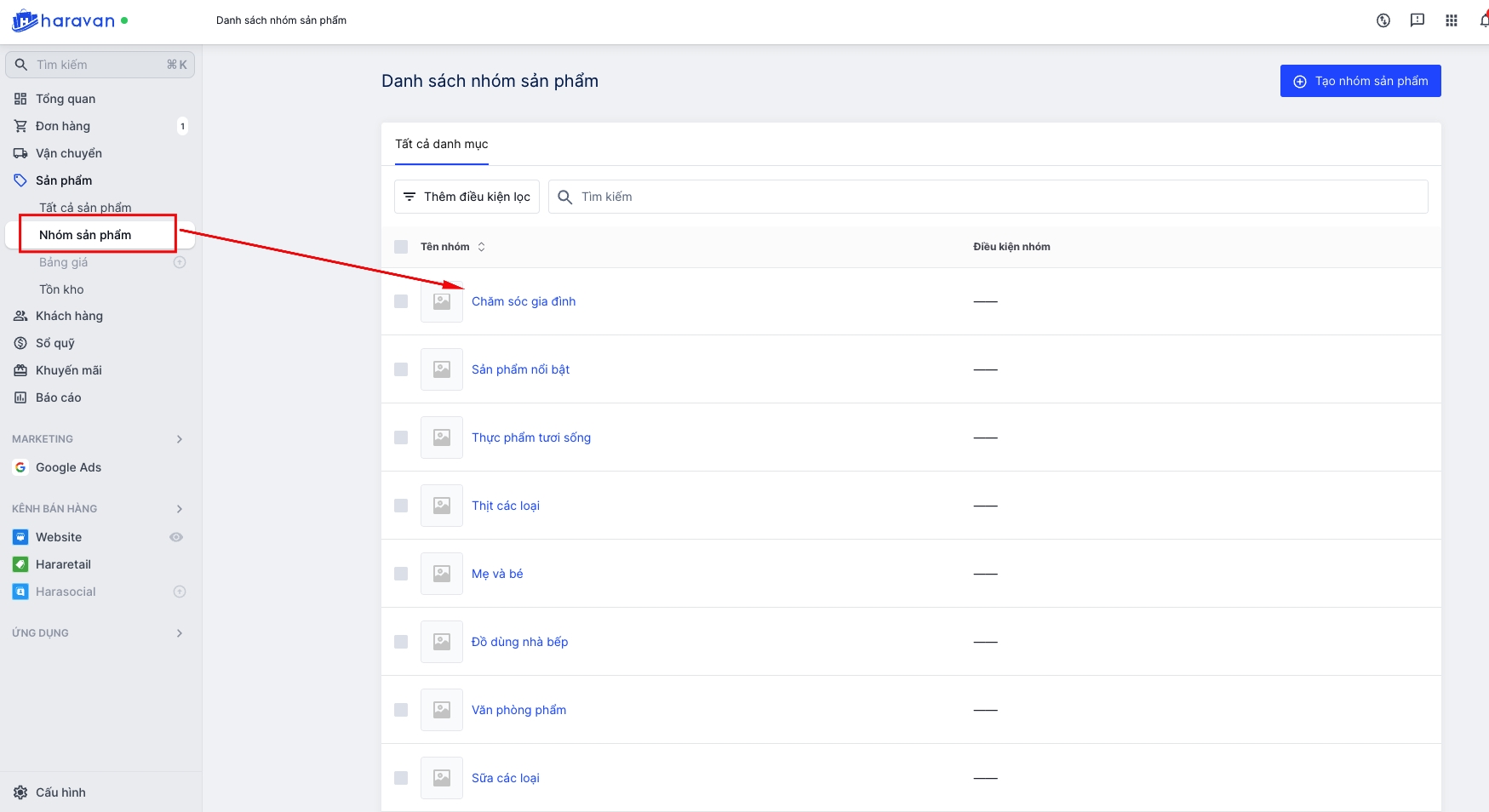 Truy cập Admin > Nhóm sản phẩm > Vào danh mục sản phẩm cần thêm ảnh banner > Upload ảnh danh mục