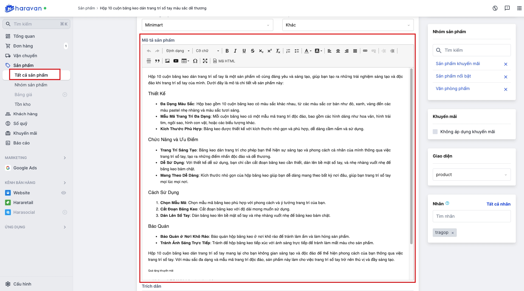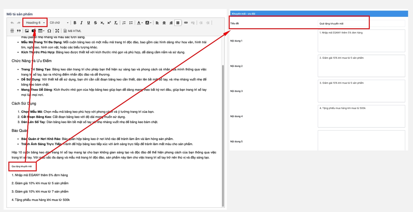 Bước 1: Truy cập vào nội dung mô tả sản phẩm trong Admin
