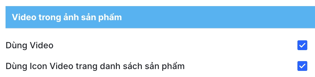 Truy cập Admin > Tùy chỉnh giao diện > Trang sản phẩm> Video trong ảnh sản phẩm