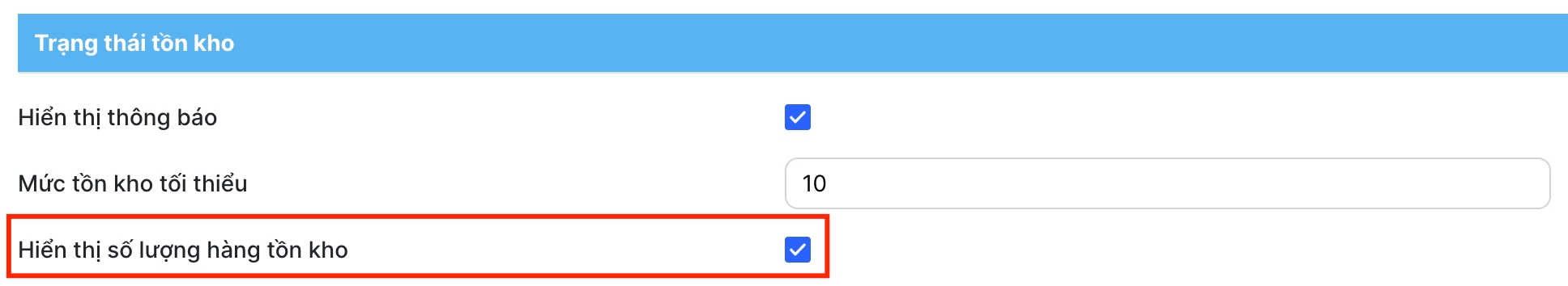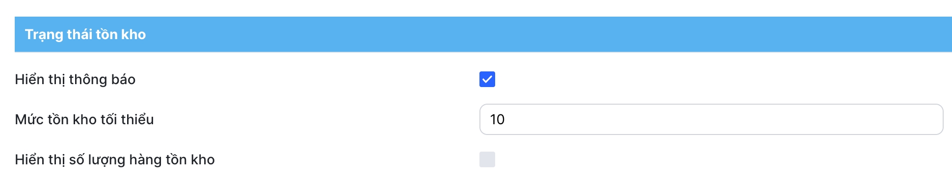 Trạng thái tồn kho chỉ hiển thị với sản phẩm có bật quản lý tồn kho