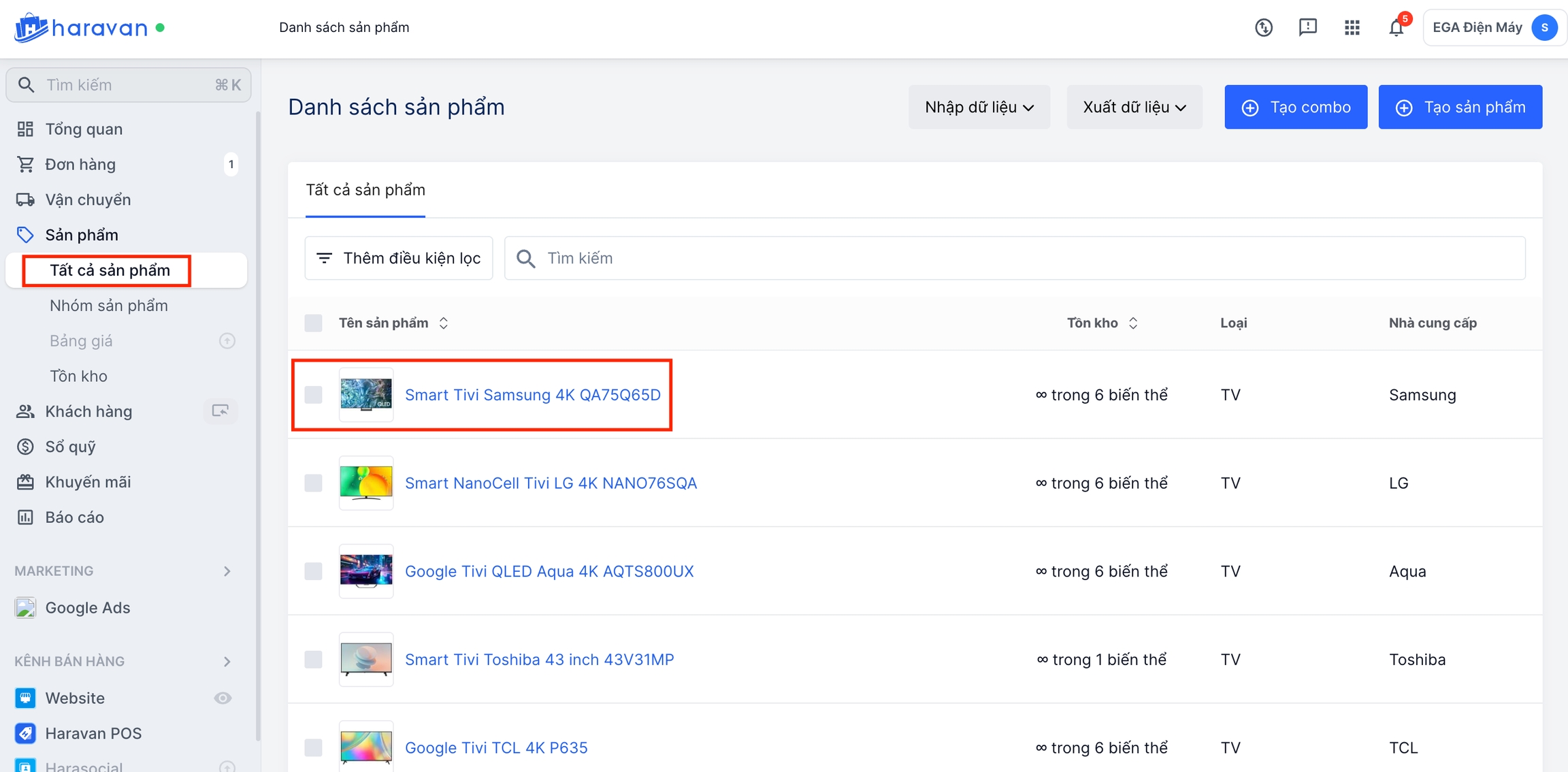 Bước 1: Vào trang admin, chọn sản phẩm muốn hiển thị video