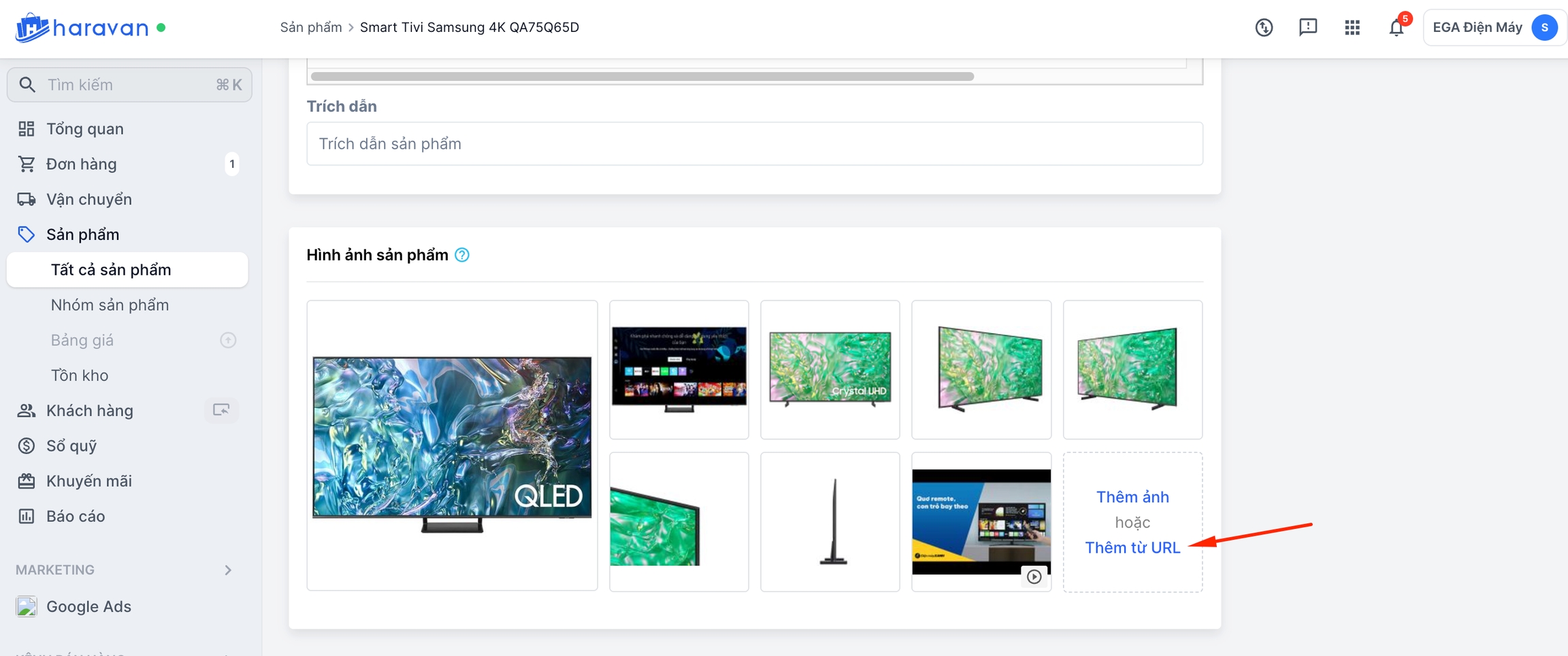 Bước 2: Đến mục Hình ảnh sản phẩm, ấn thêm từ URL