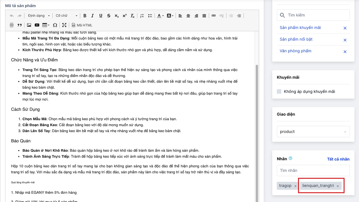 Nhập tag liên quan cho sản phẩm (như ví dụ ở hình sau)