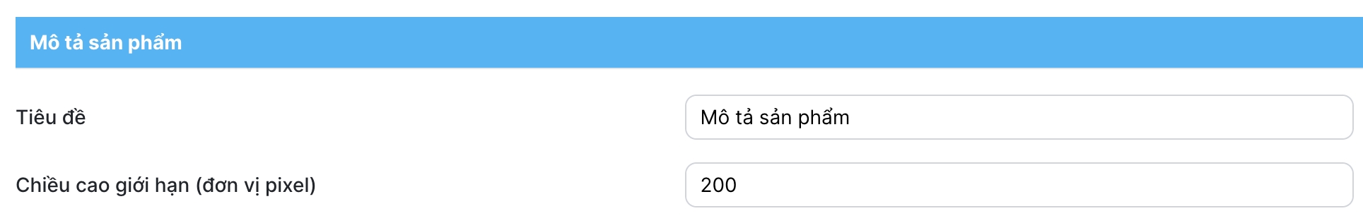 Truy cập Admin > Tùy chỉnh giao diện > Trang sản phẩm > Mô tả sản phẩm