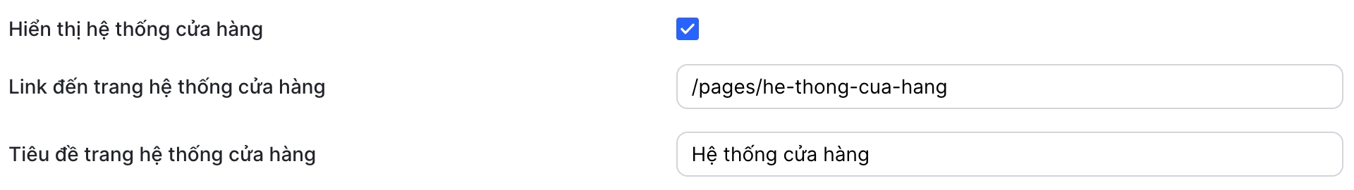 Truy cập Admin > Tùy chỉnh giao diện > Menu danh mục sản phẩm > Hiển thị hệ thống cửa hàng