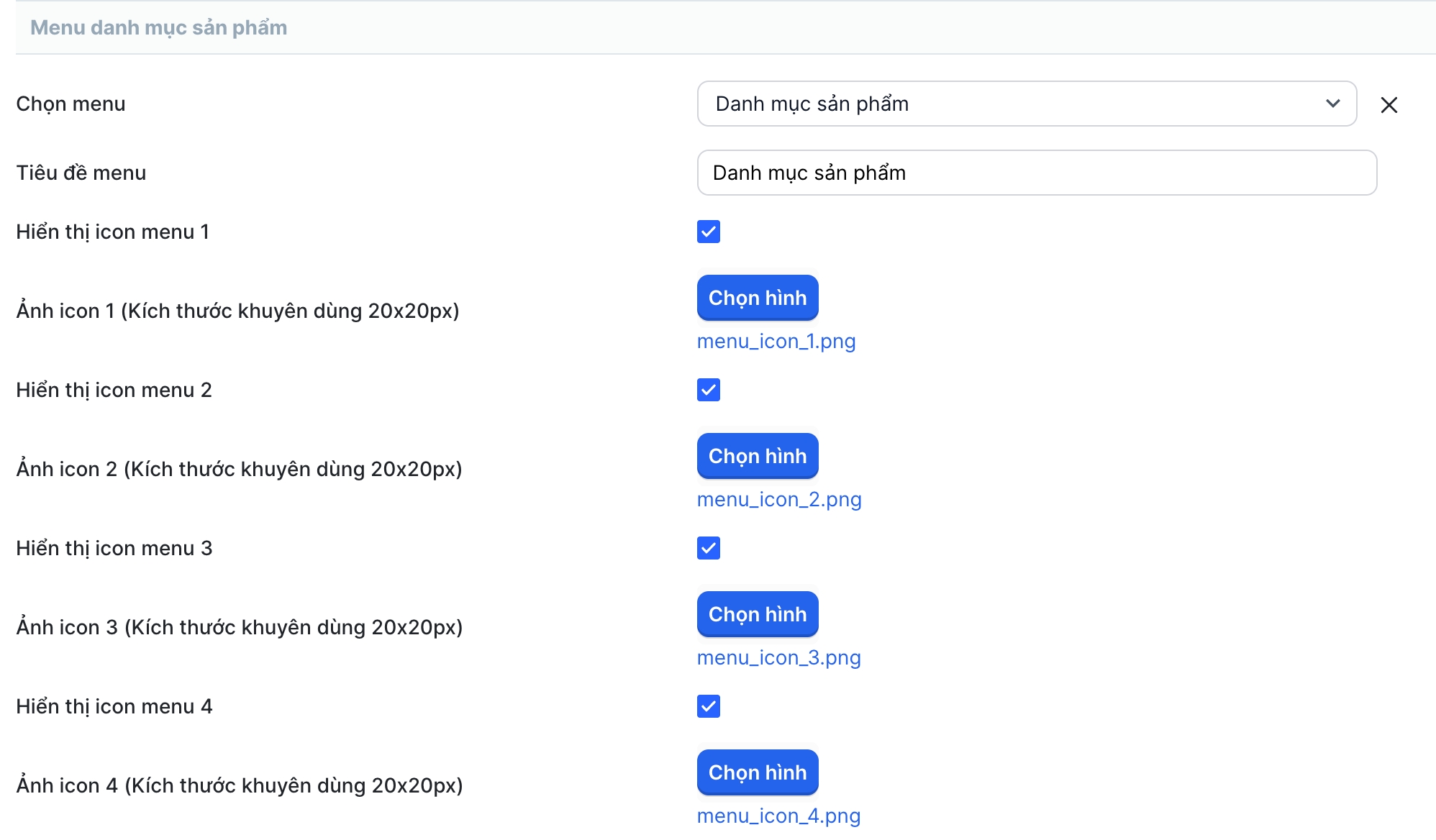 Chọn dùng icon: icon sẽ hiển thị trước tên menu