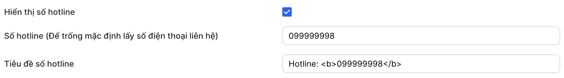 Truy cập Admin > Tùy chỉnh giao diện > Menu danh mục sản phẩm > Hiển thị số hotline