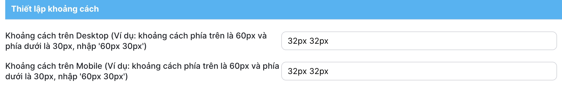 Thiết lập này cho phép bạn thay đổi khoảng cách giữa module đang thiết lập với module ở trên và dưới nó