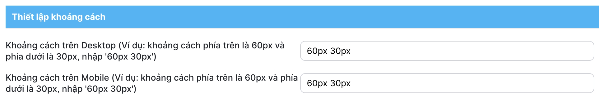 Thiết lập này cho phép bạn thay đổi khoảng cách giữa module đang thiết lập với module ở trên và dưới nó