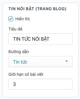 Truy cập Admin > Tùy chỉnh giao diện > Trang Blog > Tin nổi bật (trang blog)