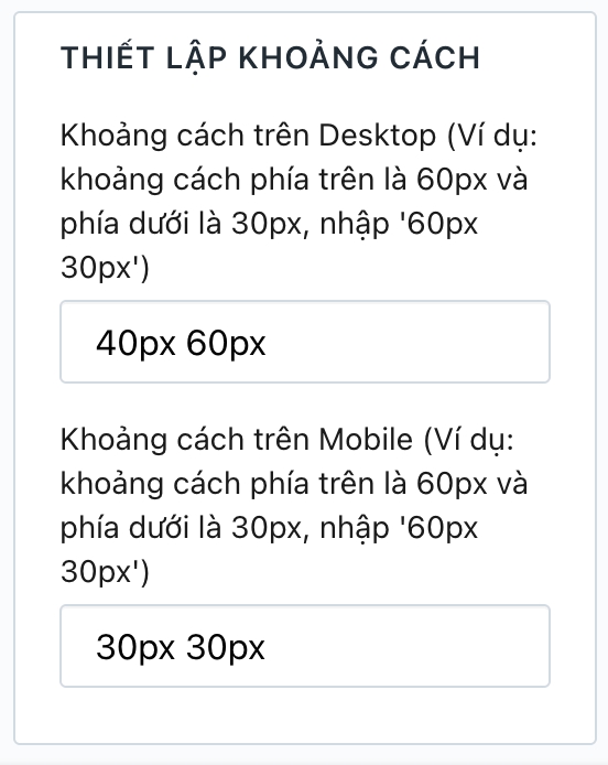 Thiết lập này cho phép bạn thay đổi khoảng cách giữa module đang thiết lập với module ở trên và dưới nó