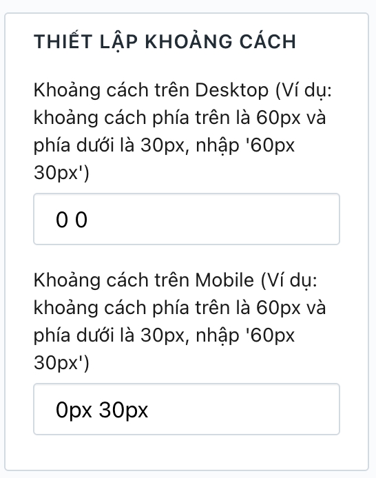 Thiết lập này cho phép bạn thay đổi khoảng cách giữa module đó với module ở trên và dưới trên trang