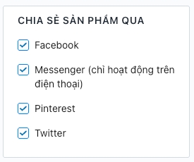 Truy cập Admin > Tùy chỉnh giao diện > Trang sản phẩm > Chia sẻ sản phẩm qua