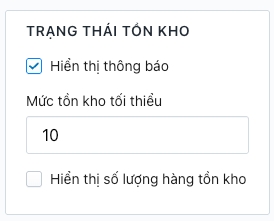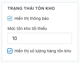 Truy cập Admin > Tùy chỉnh giao diện > Trang sản phẩm > Trạng thái tồn kho