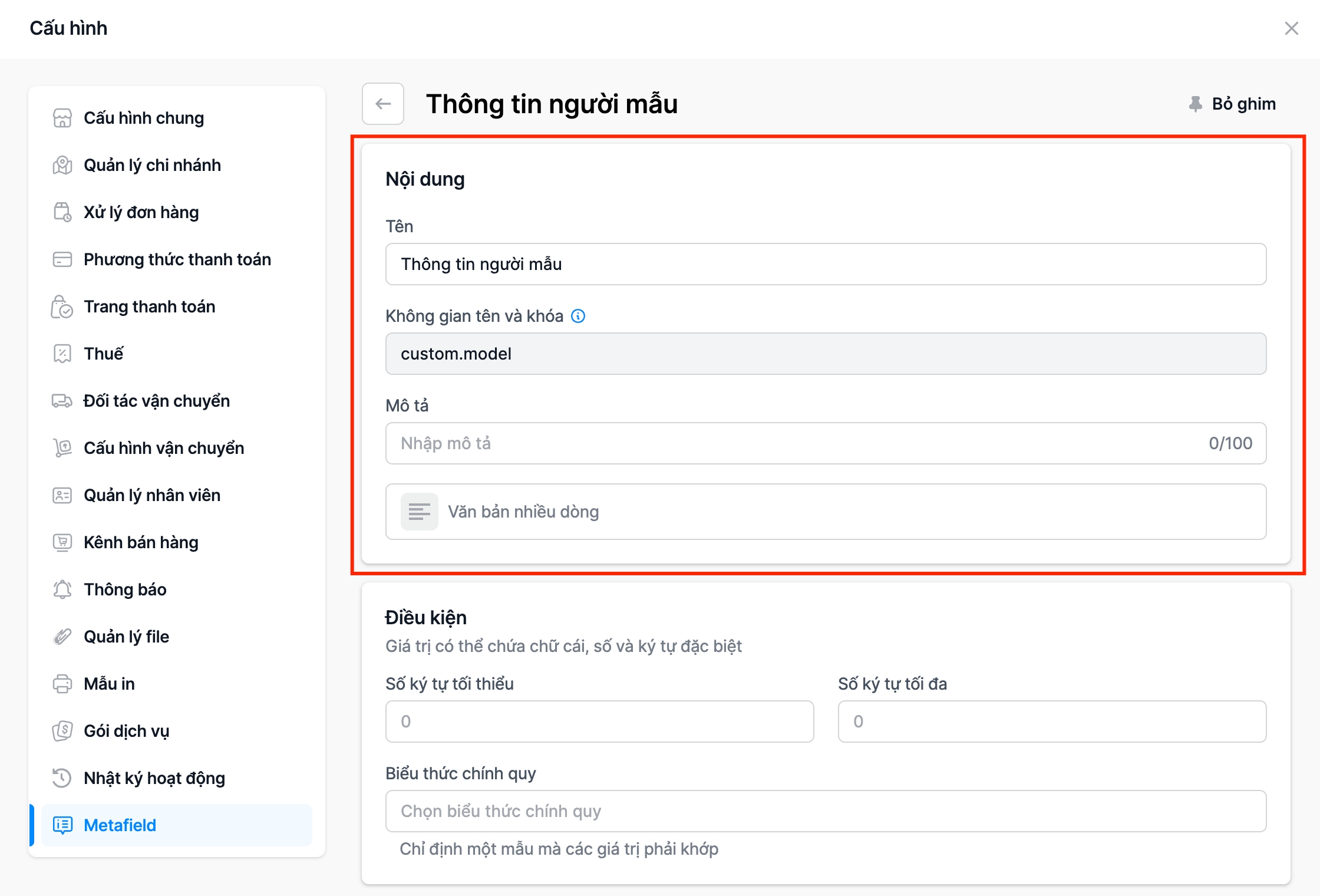 Bước 1: Cấu hình Metafield