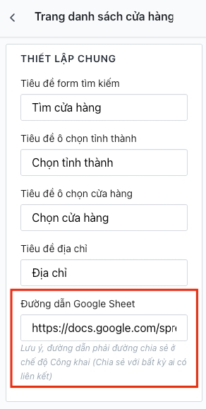 Bước 5: Dán lại link vừa copy vào ô Đường dẫn Google Sheet trong trang thiết lập