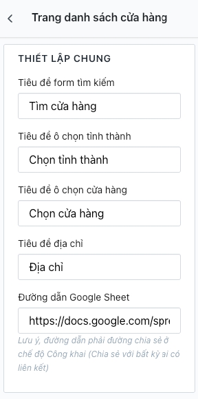 Bước 1: Mở file Google Sheet, đường dẫn file mẫu có trong Thiết lâp Trang danh sách cửa hàng