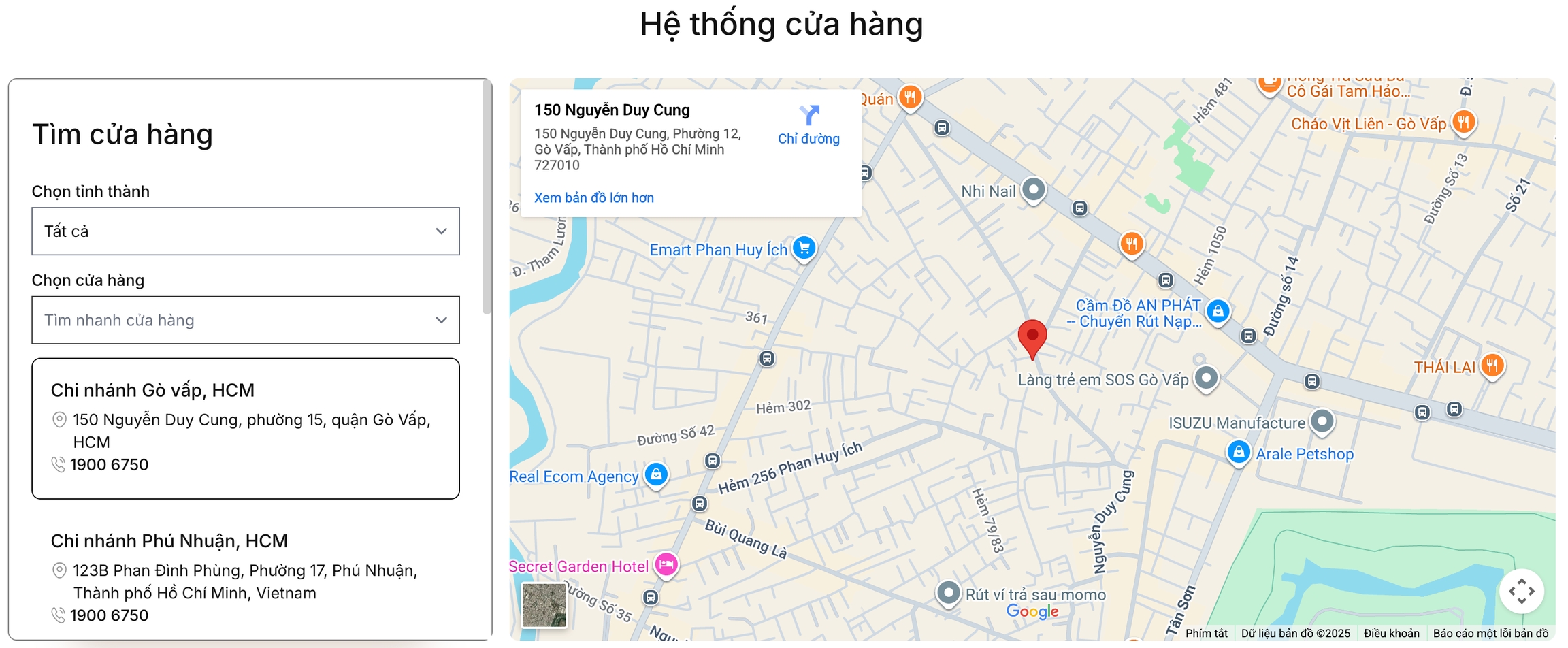 Cột 5: Iframe địa chỉ chi nhánh trên Google Map