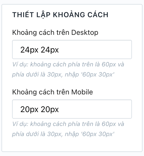 Thiết lập này cho phép bạn thay đổi khoảng cách giữa module đang thiết lập với module ở trên và dưới nó