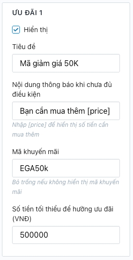 Tính năng chỉ hỗ trợ hiển thị các mốc ưu đãi để khách hàng có thể copy mã khuyến mãi của từng mốc dễ dàng