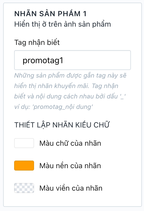 Truy cập Admin > Tùy chỉnh giao diện > Khung và Nhãn sản phẩm > Nhãn sản phẩm 1,2,3