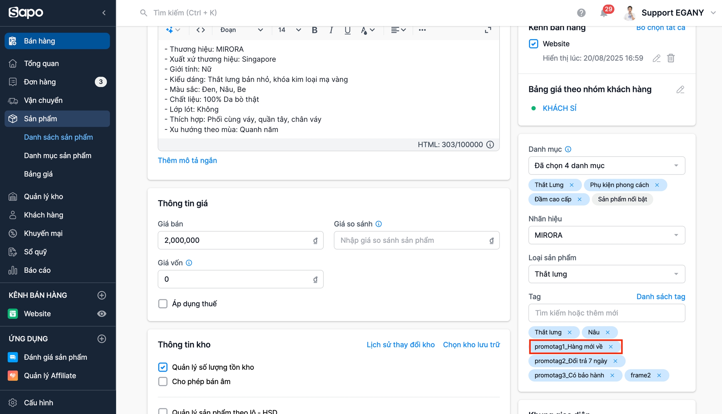 Điền tag đã quy định ở bước 2 vào sản phẩm muốn hiển thị